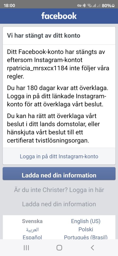 Vad gör du om man fått sitt Facebook konto hackat eller om Meta stängt av ditt konto pga någon annan kopplat ett Instagram konto till ditt FB?